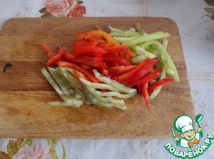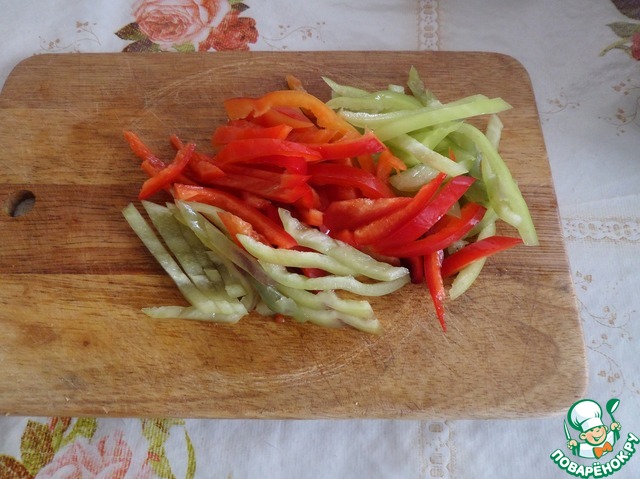 Нарезаем болгарский перец.