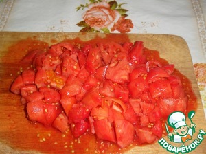 Помидоры очищаем от кожицы и нарезаем.