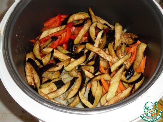 Добавляем замаринованные баклажаны.