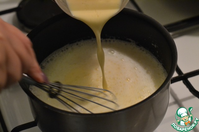 Струйкой ввести разведенный пудинг, постоянно мешая.