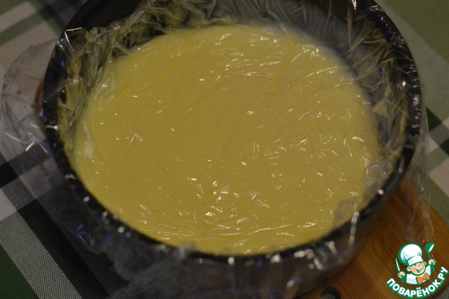 Снять с огня пудинг и прикрыть его пищевой пленкой (на контакт), полностью остудить.