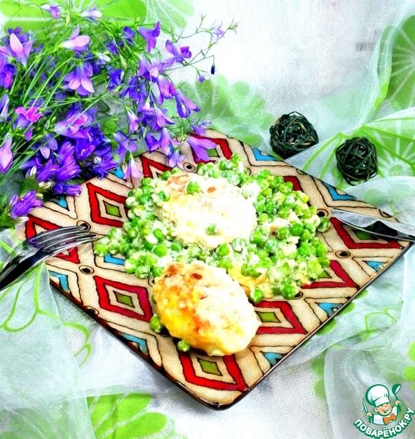 картофель, филе, лук, чеснок. Разбила яйцо, налила