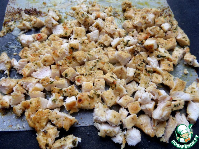 Затем измельчаем на кубики.