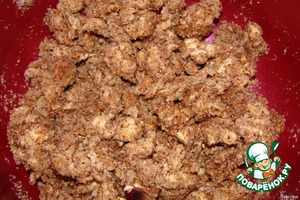 Добавить яйца и муку и замесить тесто. Когда делала в первый раз, думала, ничего не получится, все рассыпается. Но через 3-4 минуты замеса все прекрасно получилось. Тесто ставим в прохладное место на часок.