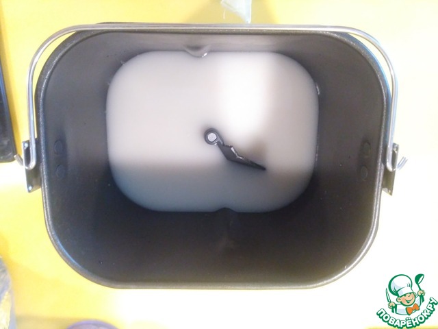 • В воде растворила дрожжи, далее я закладываю ингредиенты в хлебопечку в соответствии с требованиями инструкции, сначала жидкие, затем сухие