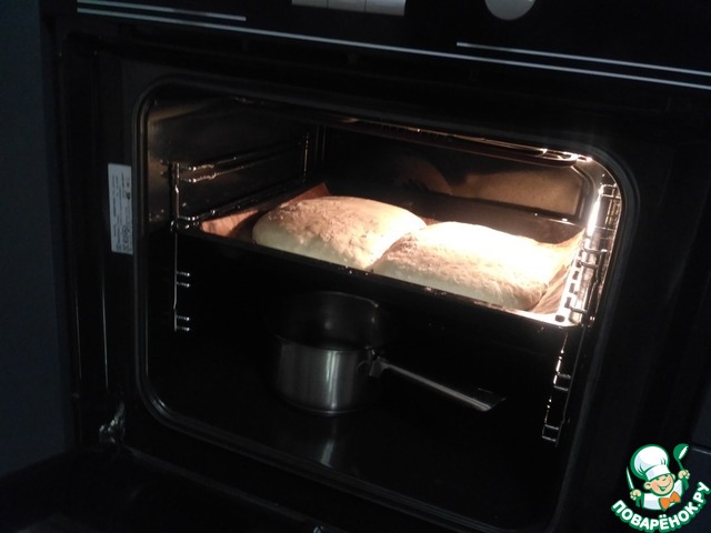 • Выпекать чиабатты в разогретой до 240 градусов духовке. В духовку обязательно поместить ёмкость с водой. На режиме с конвенцией чиабатта приготовилась за 30 минут, на обычном надо минут 40.