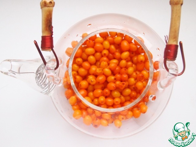 Облепиху хорошо промыть и положить в чайник. По желанию можно её размять.
