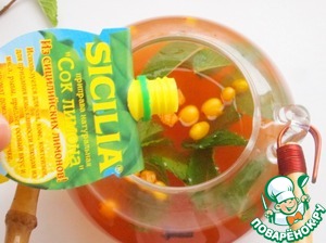 Перед подачей я вынимаю ситечко с чайной заваркой, добавляю сок лимона SICILIA.