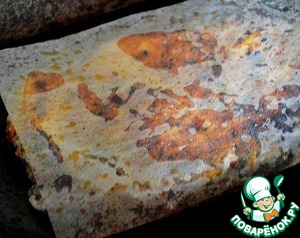 Кладем его в специальные пергаментные листы с уже нанесенными приправами и специями.