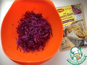 Ингредиенты для «Салат с курицей и краснокочанной капустой»: