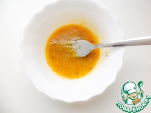 Для приготовления заправки в миску добавить свежевыжатый сок лайма (или лимона), соль, сахар, дижонскую горчицу, острый перец и хорошо взбить до растворения соли и сахара. Добавить оливковое масло и снова взбить. Попробовать на вкус, при необходимости добавить специи.