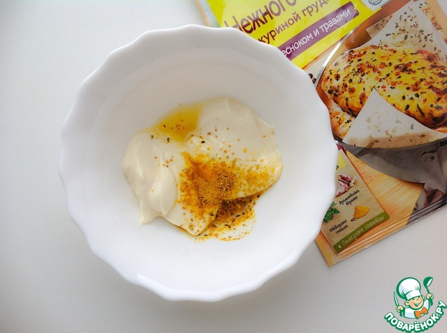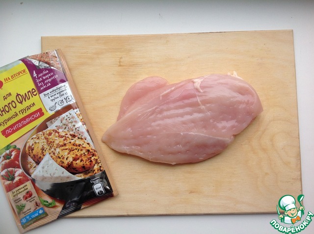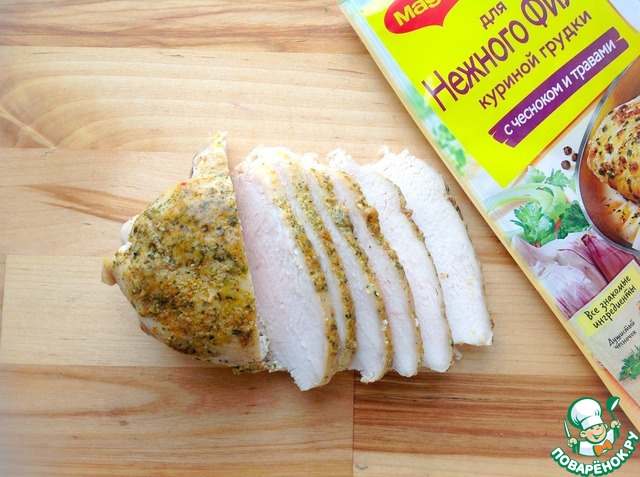 - Специи ("MAGGI на второе для нежного филе куриной грудки с чесноком и травами" — 1 лист) — по вкусу