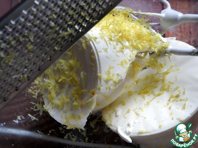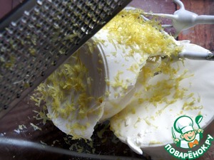 Взбить рикотту со сгущенным молоком. Добавить сок и цедру половины лимона, ликер, ваниль.