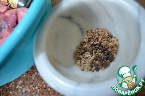 В ступке истолочь зиру, перец горошком и семена укропа.