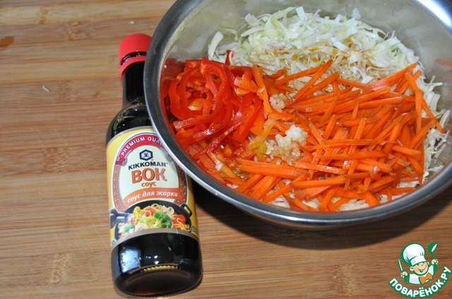 - Соевый соус (ТМ Киккоман "Вок соус для жарки") — 4 ст. л.