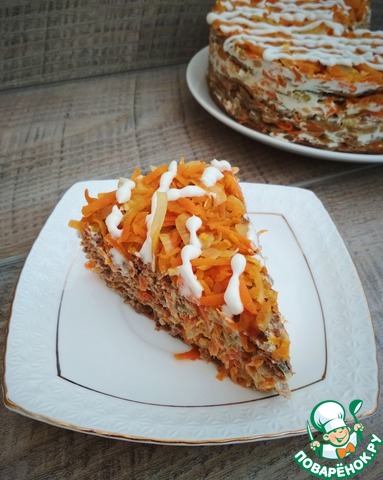 Ингредиенты для «Печеночный торт с морковной начинкой»: