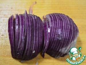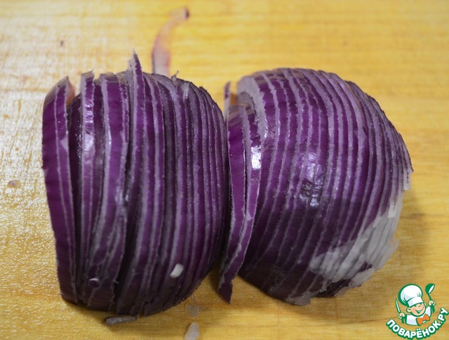 Лук нарезать тонкими полукольцами, отправить жариться на сковороду с растительным маслом.