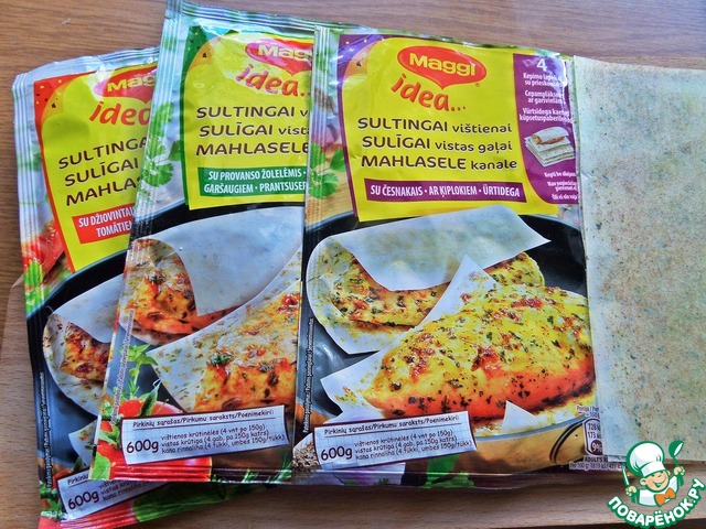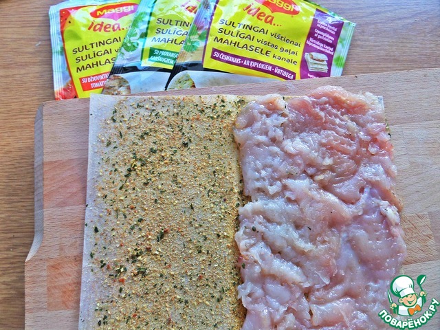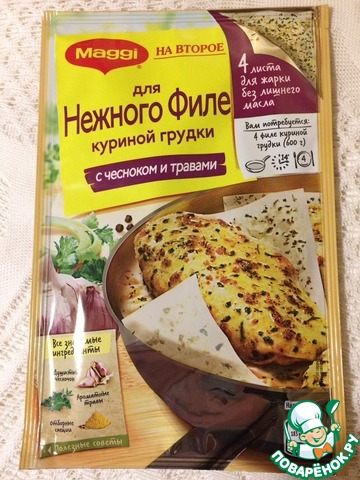 - Приправа (1 лист с приправами "Магги на второе для нежного филе куриной грудки") — 1 шт