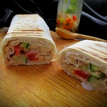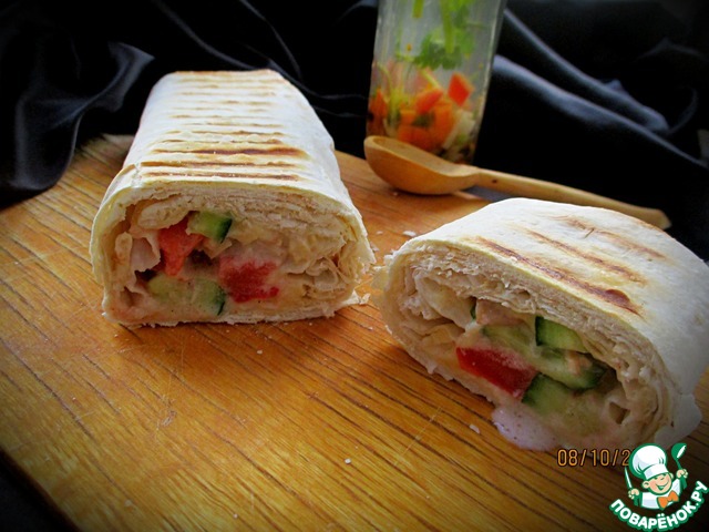 Завернув в пергамент, фольгу или плёнку, берём с собой на работу или на прогулку. Ребёнок в школе тоже заценит такой перекус.
