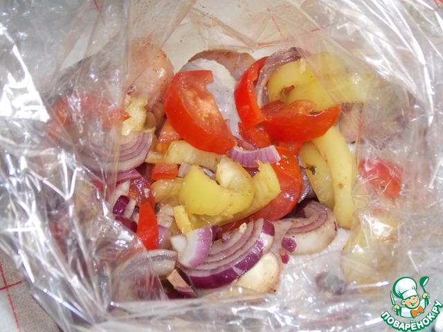 • Выложить в пакет для запекания.