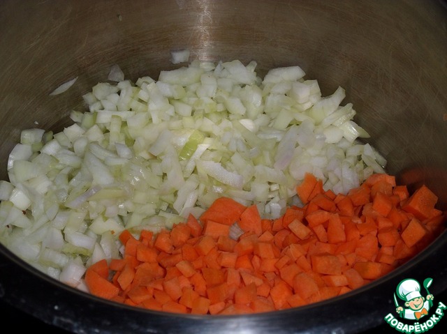 • Ставим кастрюлю или казан на огонь. В кастрюлю или казан наливаем растительное масло. Выкладываем лук и морковь.