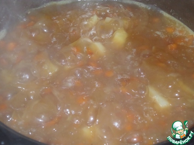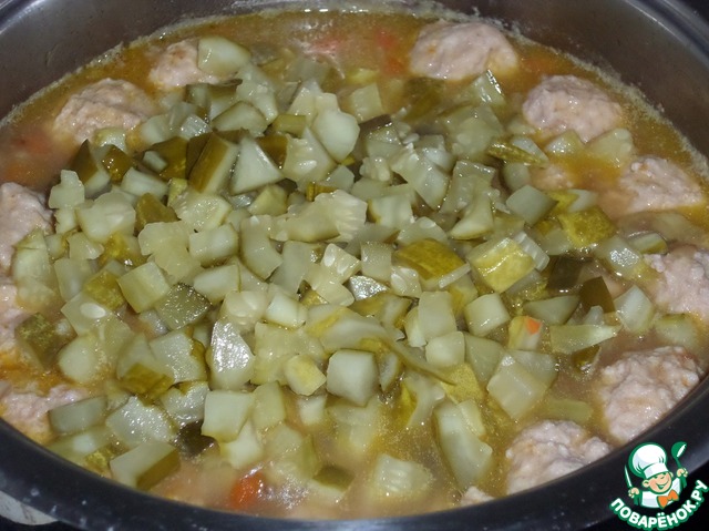 • Добавляем фрикадельки в кастрюлю. Варим 5 минут после закипания.