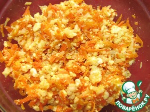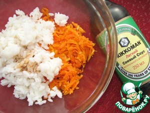 К обжаренной моркови добавить 3 ст. л. вареного риса.