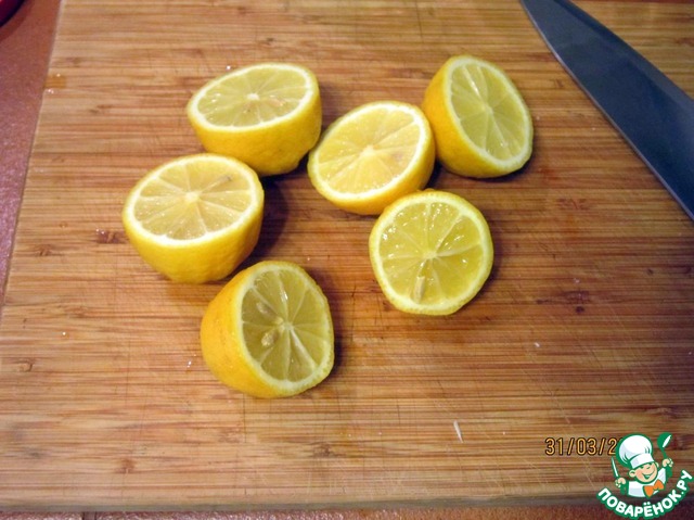 Лимоны режем пополам.
