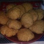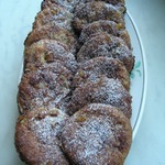 Каждый шарик теста щедро обвалять со всех сторон в сахарно-коричной смеси. Я выложила шарики на облатку (тонкий листок выпеченного пресного теста, наподобие вафли), но это не обязательно.