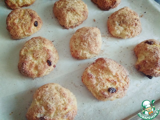 Выложить заготовки на противень с пергаментом, соблюдая между ними расстояние, так как они во время выпекания подрастут и немного расплывутся.