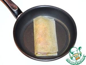 4. На разогретую без масла сковороду положить завернутую грудку и на слабом огне обжарить с двух сторон.