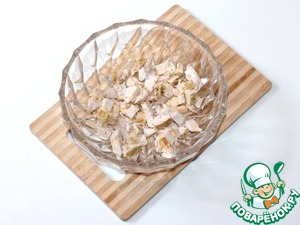 6. Нарезаем куриную грудку кубиками и кладем в салатницу.