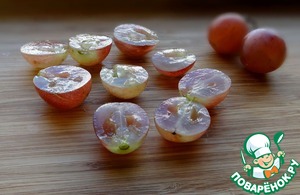 Крупные виноградины разрезать пополам и вынуть косточки.