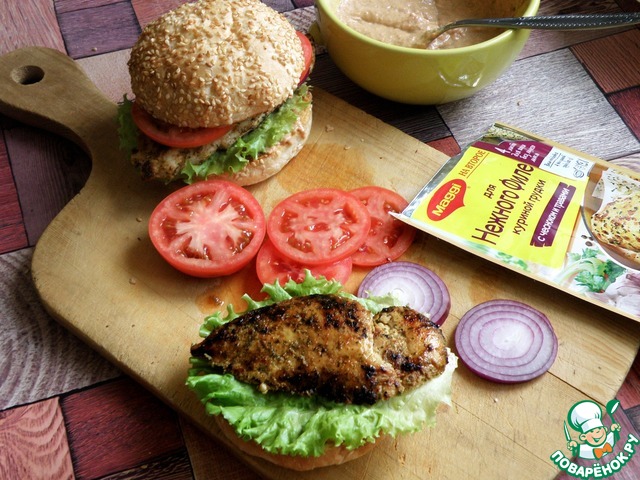 Если у вас растут дети, то вас не удивит их безмерная любовь к фастфуду. Чем вреднее, тем заманчивее - вот девиз большинства подростков. Бороться с этой страстью затруднительно, а вот приготовить домашний бургер, со свежими овощами, салатом и тунцовым соусом – легко и просто. А нежная куриная грудка, приготовленная с помощью ароматных листов Магги без единой капли масла, добавит бургеру пользы и вкуса!