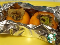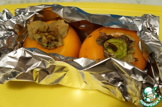 Хурму и чеснок помыть, смазать растительным маслом, завернуть в фольгу и выпекать при температуре 180 гр. 15-20 минут. Чеснок вынуть раньше минут на 5. Натереть имбирь. |