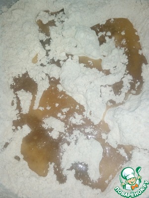 Просеять оба вида муки с солью и разрыхлителем. Насыпать сахар и хорошо перемешать.