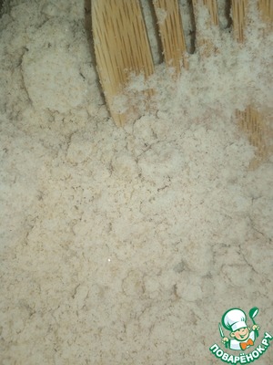 В смесь сахара и муки налить растительное масло и перетереть в крошку.