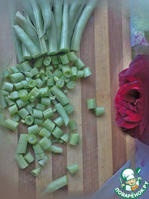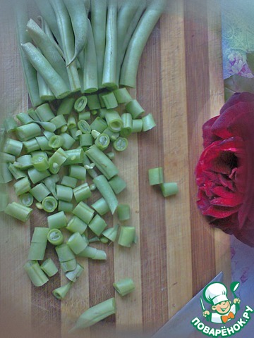 Режем фасоль. Какие кусочки? На выбор. Я режу не мелко, но и не крупно.