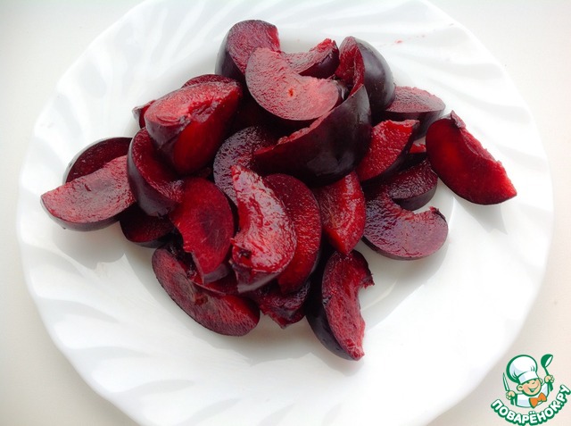 Сливы помыть, удалить косточки, нарезать небольшими ломтиками.
