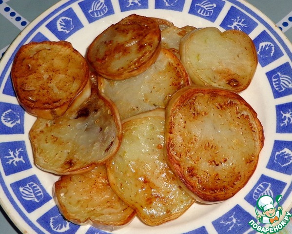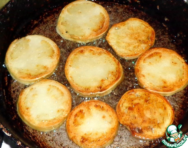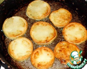 Обжарить кружочки на подсолнечном масле до золотистого цвета.