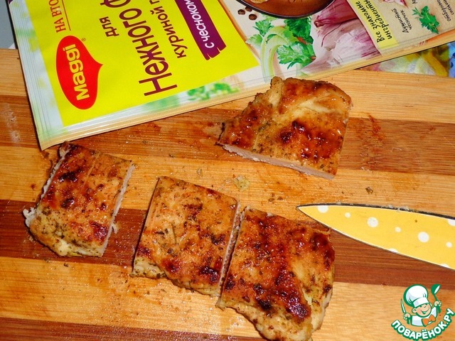 - Приправа (MAGGI на второе "Для нежного филе куриной грудки с чесноком и травами") — 1 шт
