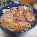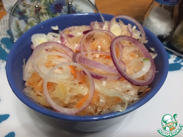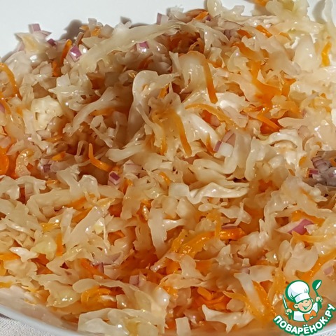 Добавляем любимое растительное масло и лук к квашеной капусте, перемешиваем и подаём к чему душа пожелает.