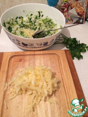 Лук мелко порубить, сельдерей натереть на крупной тёрке. Обжарить их вместе на сковороде.