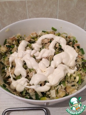 Заправьте майонезом, добавьте соль и перец. Перемешайте.