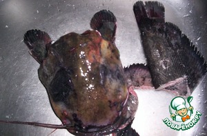 Отделить от тушки сома голову, отрезать хвост и плавник.