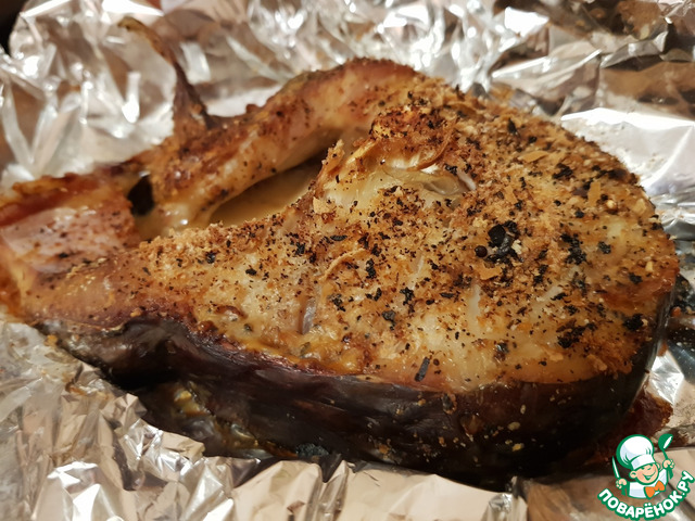 Порционные куски сома посолить, поперчить, полить соком лимона, ПОСТАВИТЬ В ХОЛОДИЛЬНИК на 30-40 минут.