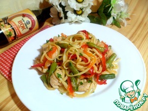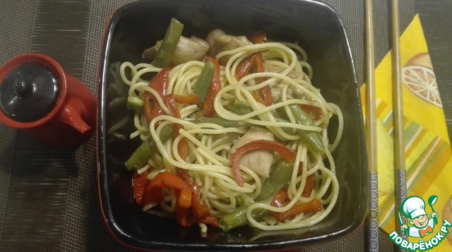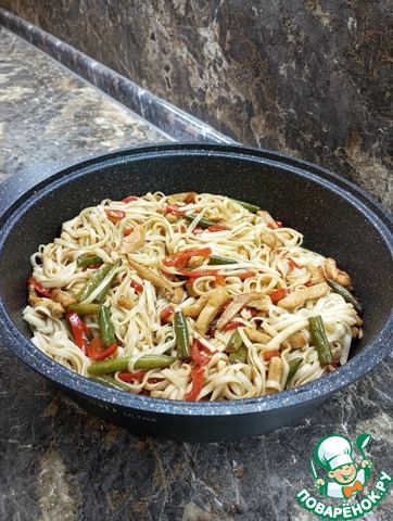 Рецепт «Стир-фрай из курицы с яичной лапшой»: