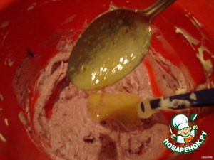 В одну часть крема добавляем смородиновый джем, перемешиваем,