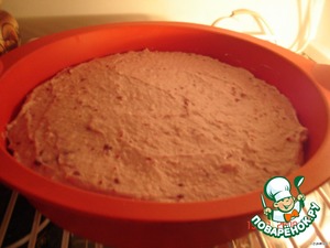 Выливаем смородиново-сливочный крем на бисквит и ставим для застывания в холодильник.