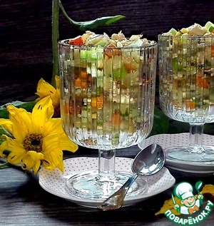 • Курицу и огурцы нарезала кубиками и положила